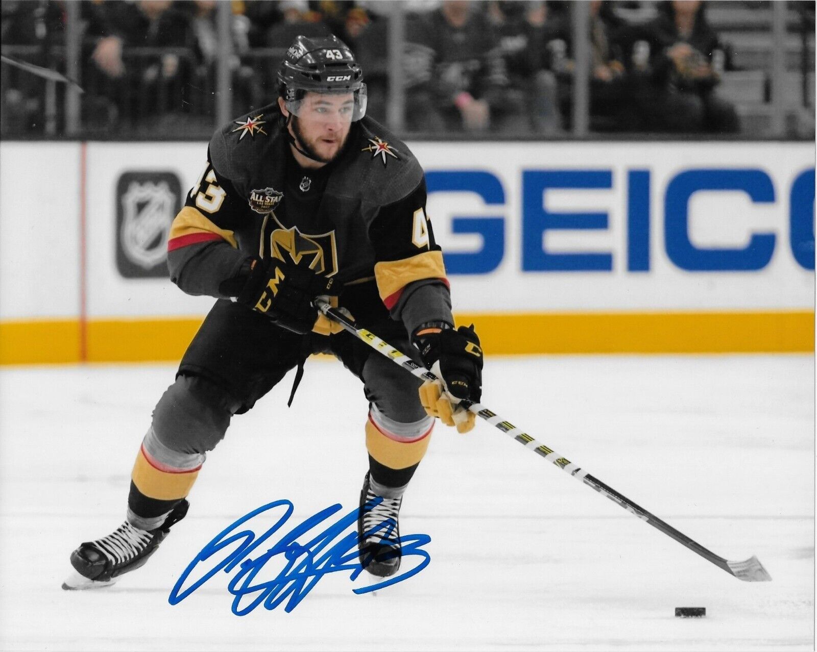 Great autographed photo of Vegas Golden Knights Paul Cotter. Obtained in person when the Golden Knights visited Montreal to play the Canadiens, it is beautifully signed in Blue Sharpie, nice, clear and smudge free.
