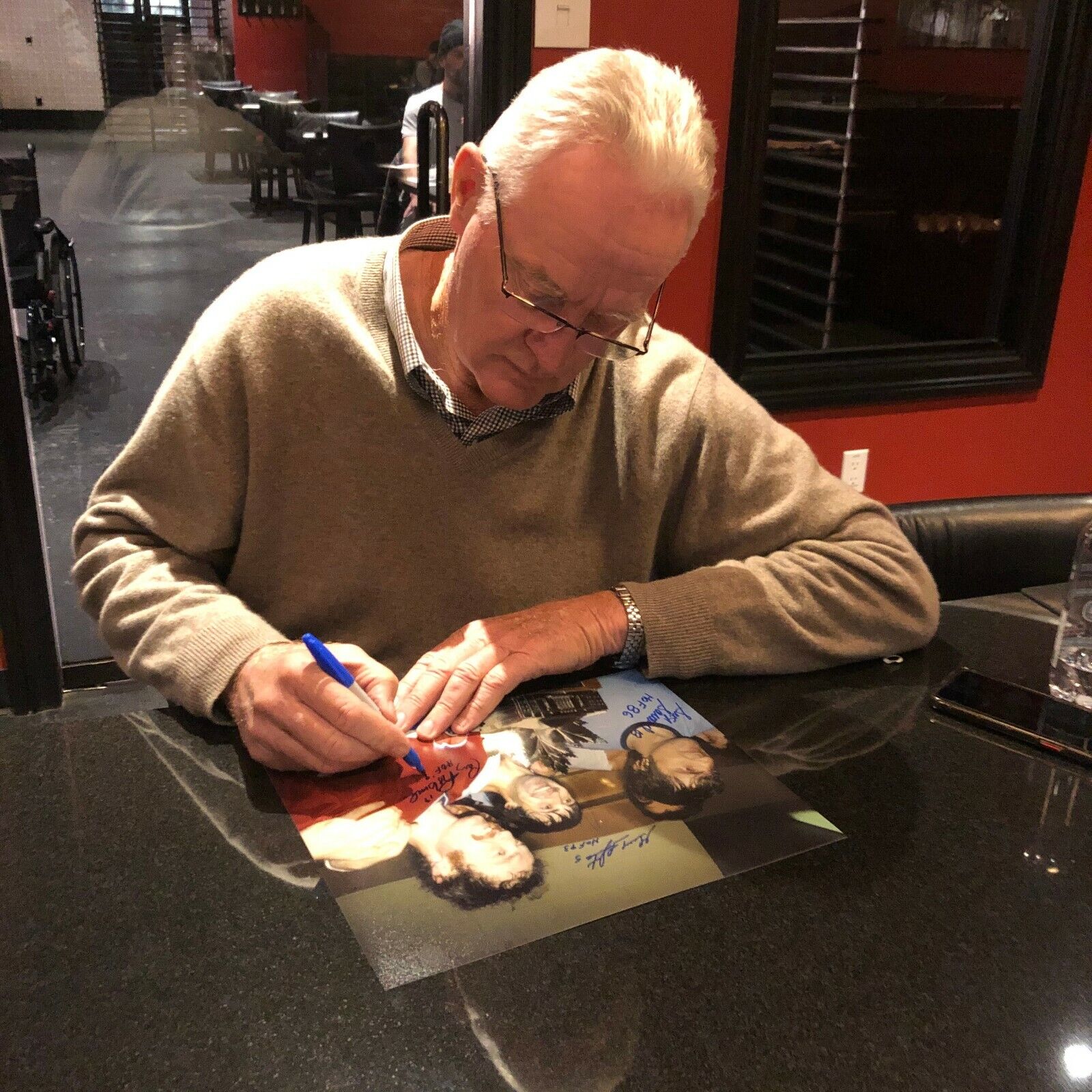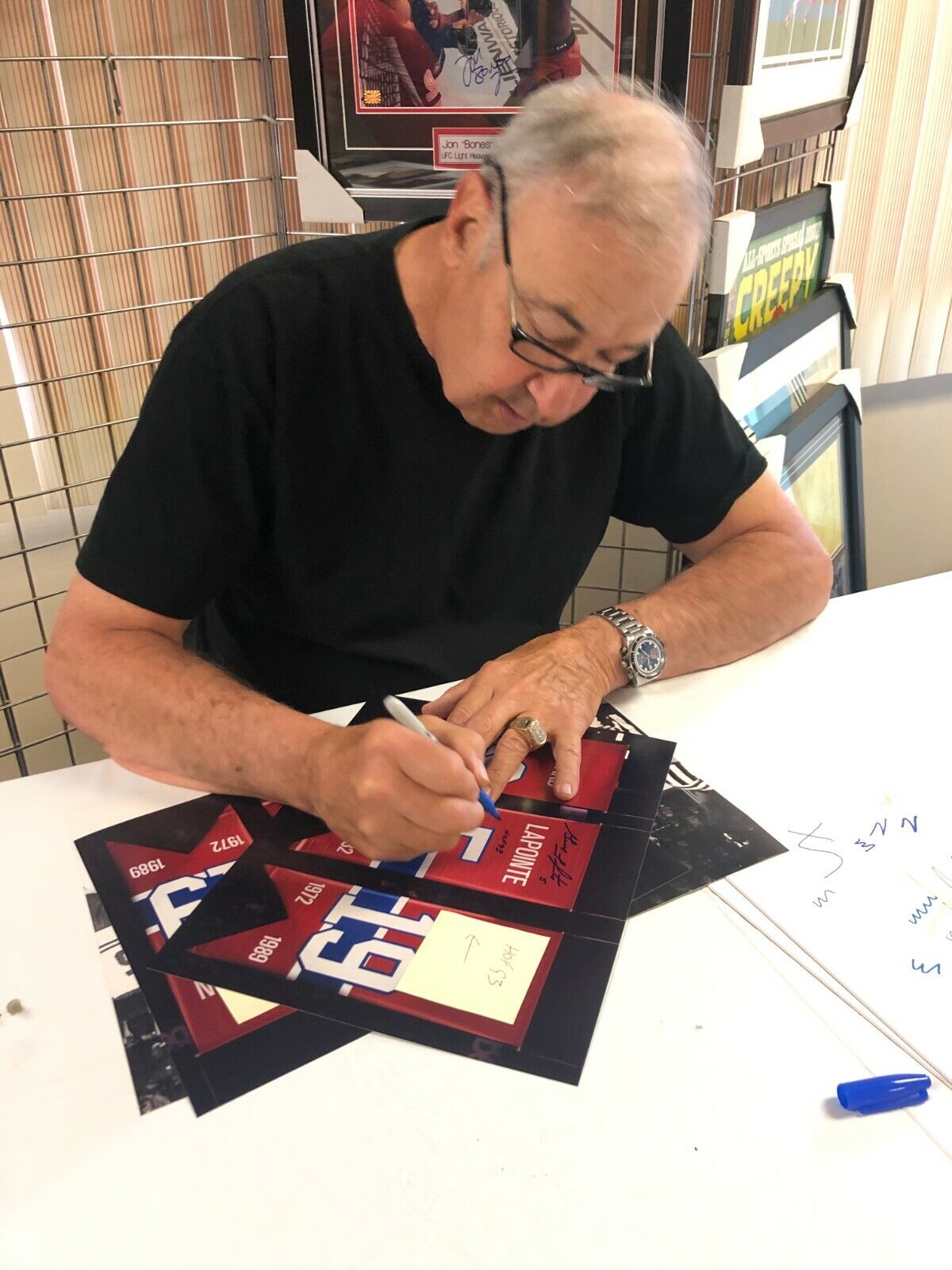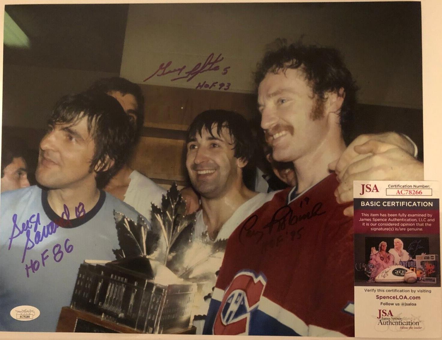 Great autographed 11x14 Photo of Montreal Canadiens Hall of Famers and Big 3 Larry Robinson Inscribed H of F 95, Serge Savard Inscribed H of F 86 and Guy Lapointe Inscribed H of F 93 with JSA Authentication. Obtained in person at 3 Different Private Signings , it is beautifully signed in Blue Sharpie, nice, clear and smudge free. This comes with JSA Authentication