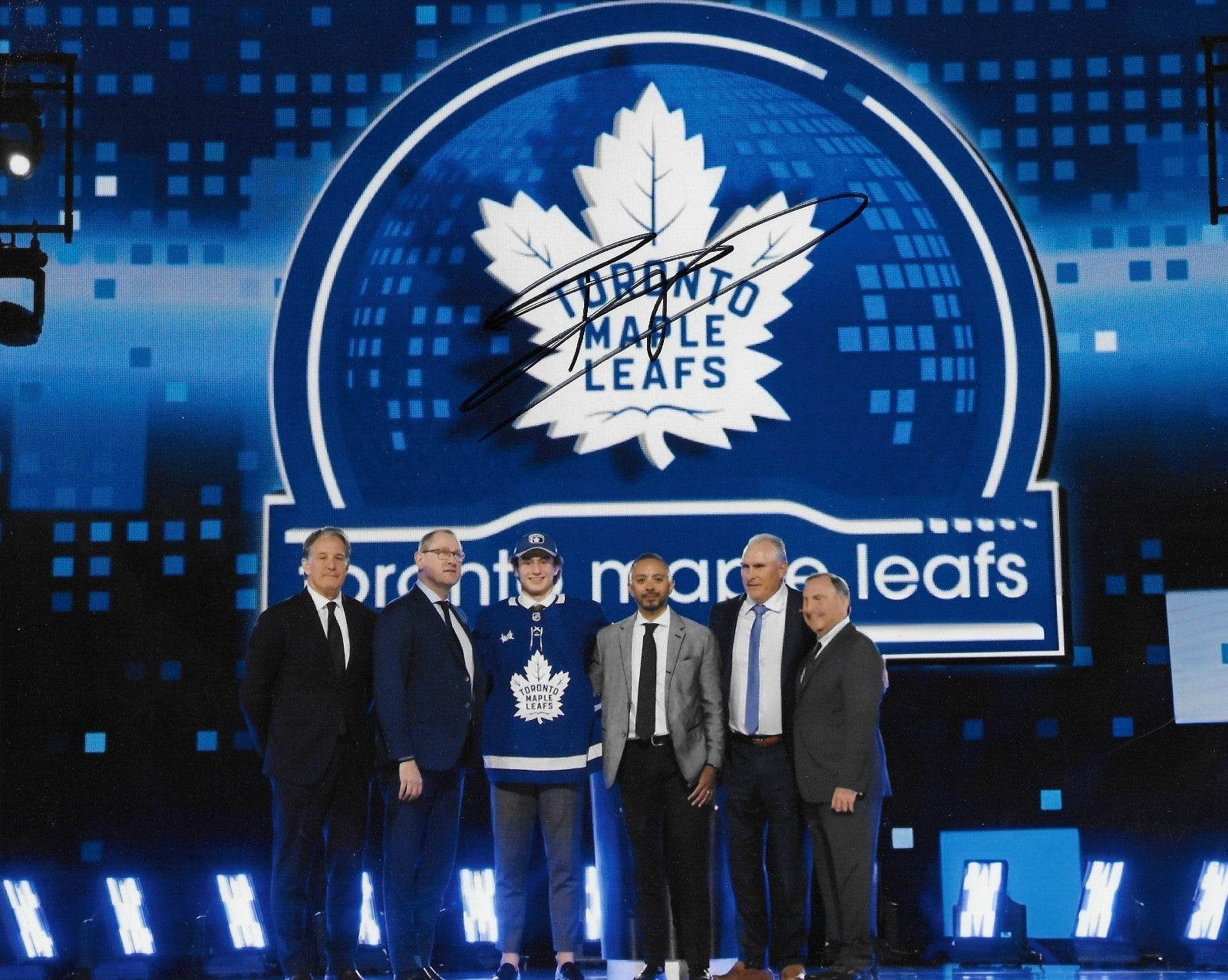 Great Autographed Photo of the Toronto Maple Leafs Rookie Ben Danford. Obtained in person outside the Bell Center in Montreal during the Rookie Team games in Montreal, it is beautifully signed in Black Sharpie, nice, clear and smudge free.