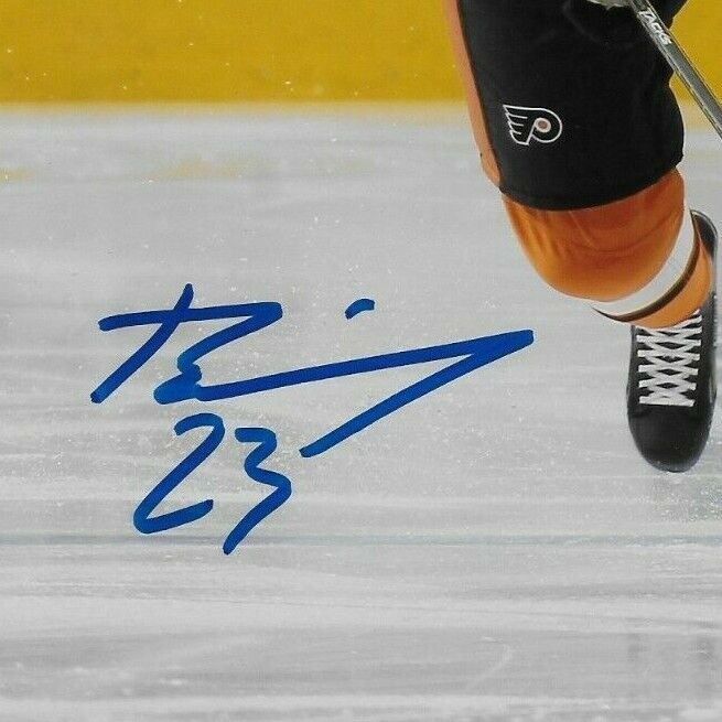 Great autographed photo of the Philadelphia Flyers Brandon Manning. Obtained in person during the Flyers visit to play the Canadiens, it is beautifully signed in Blue Sharpie nice, clear and smudge free.