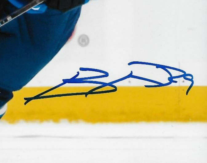 Great Autographed Photo of the Winnipeg Jets Rookie Brayden Yager. Obtained in person outside the Bell Center in Montreal during the Rookie Team games in Montreal, it is beautifully signed in Blue Sharpie, nice, clear and smudge free.