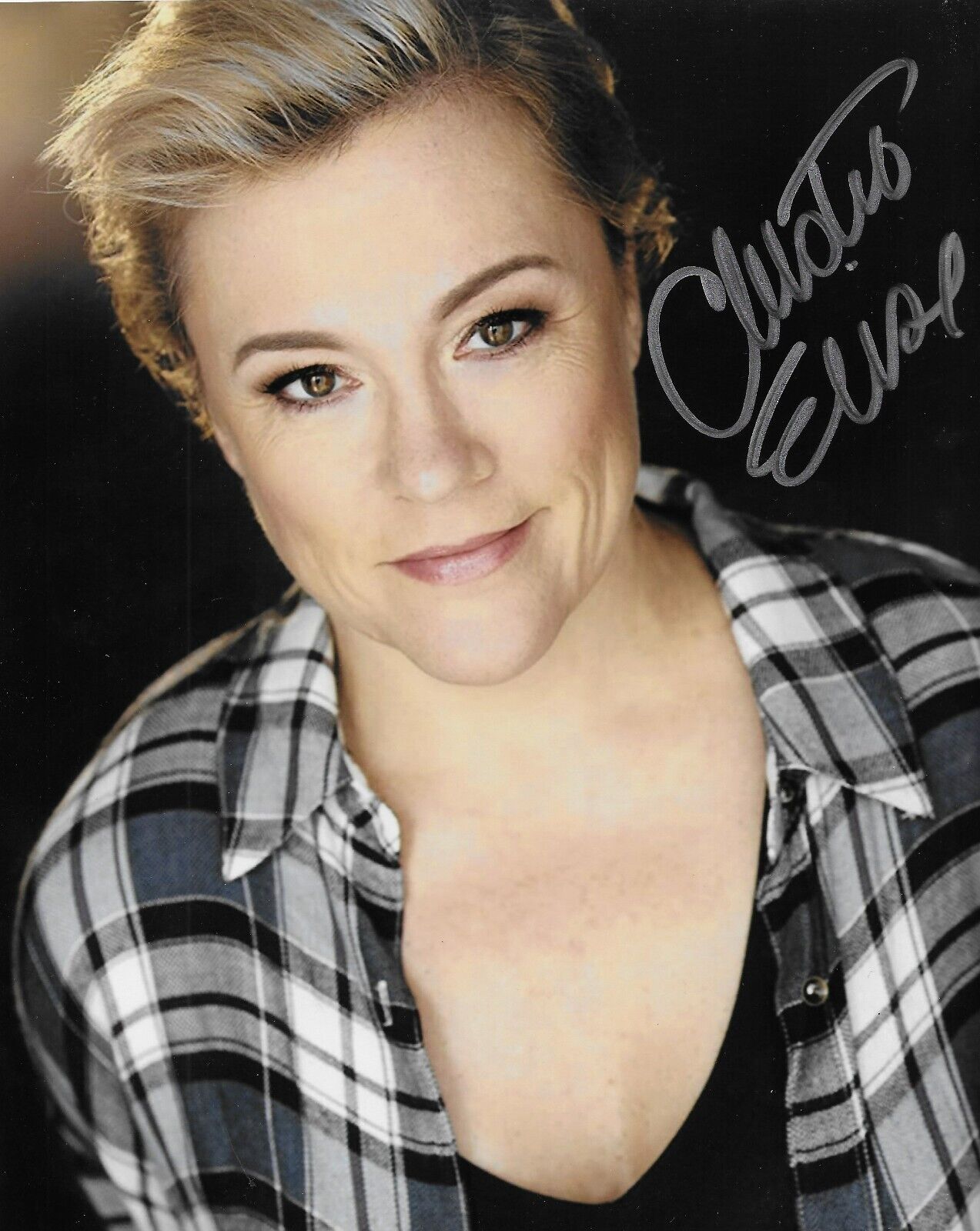 Great autographed 8x10 Photo of Actress Christine Elise. Obtained in person while she was in town, it is beautifully signed in Silver Paint Pen, nice, clear and smudge free.