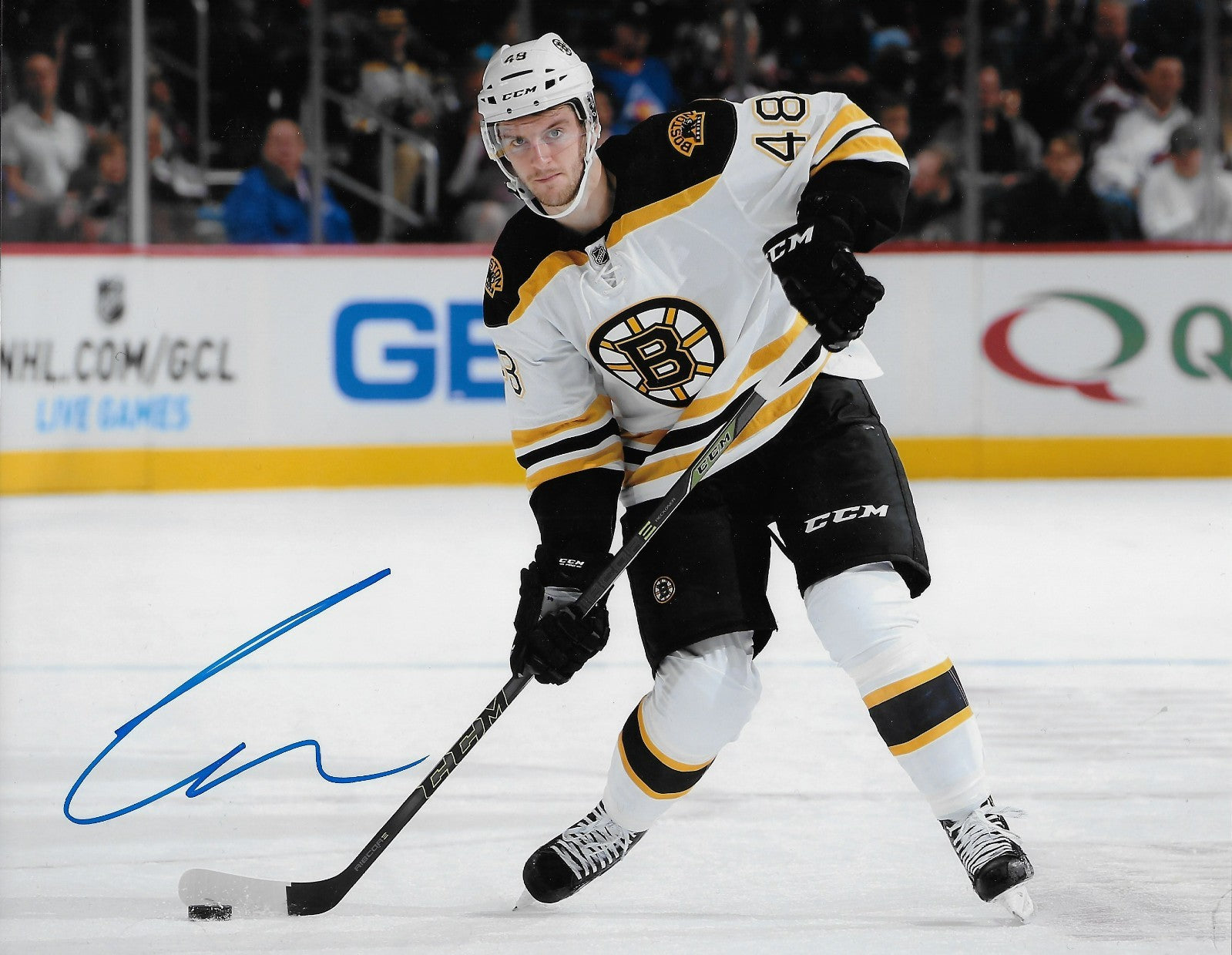 Great autographed photo of Former Boston Bruin Colin Miller. Obtained in person during a Winnipeg Jet visit to Montreal, it is beautifully signed in Blue Sharpie, nice, clear and smudge free.