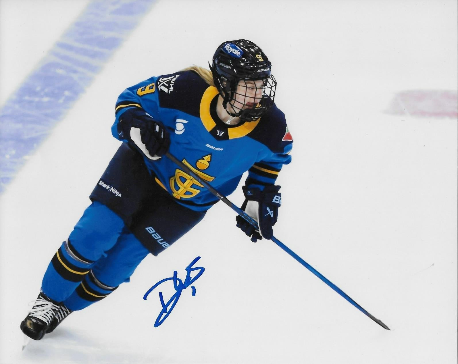 Great Autographed Photo of PWHL Toronto Sceptres Player Daryl Watts. Obtained in person in Montreal at a PWHL game, it is beautifully signed in Blue Sharpie, nice, clear and smudge free.