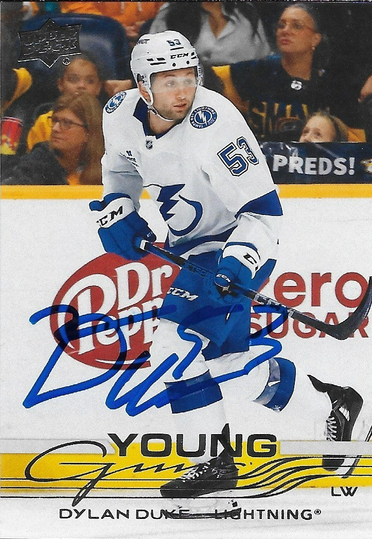 Signed Dylan Duke Young Guns 2025-26 UD Tampa Bay Lightning Rookie Card