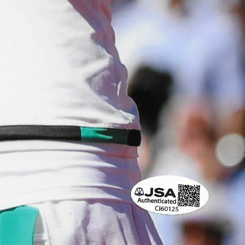 Great Autographed Photo of Tennis Star Jelena Ostapenko. Obtained in person at the Rogers Cup held in Montreal, it is beautifully signed in Blue Sharpie, nice, clear and smudge free. This comes with JSA Authentication