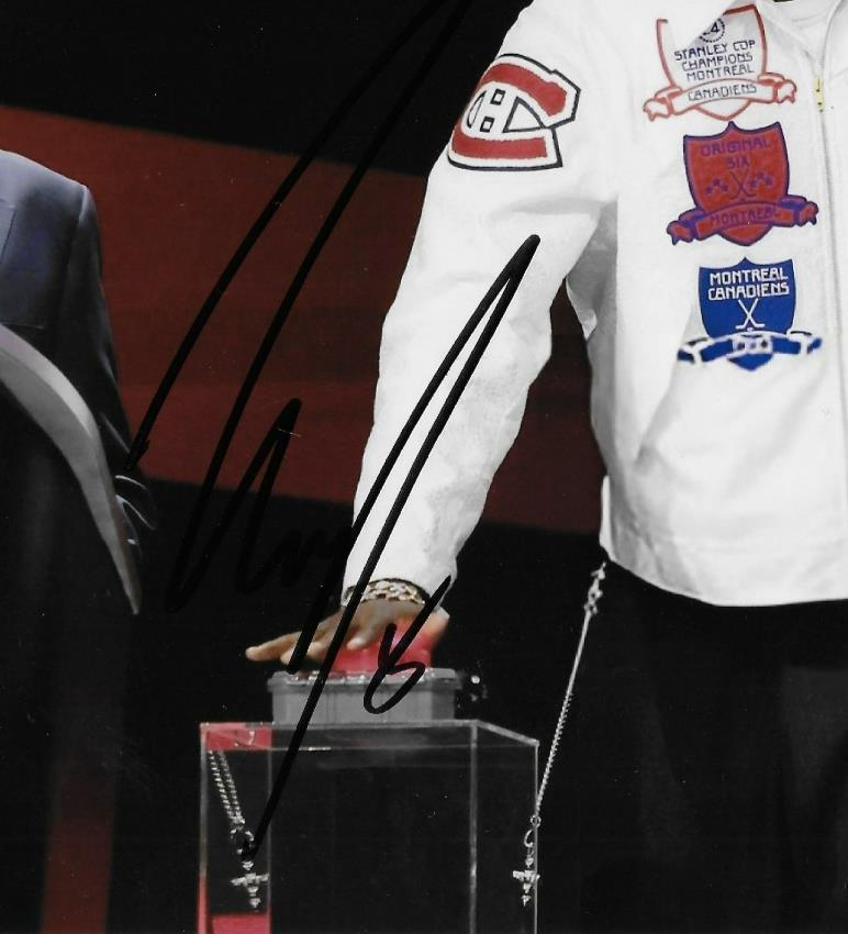 Great Autographed photo of Oklahoma City Thunder Luguentz Dort from the 2025 NHL Draft where he announced the Montreal Canadiens pick. Obtained in person in Montreal his home city, it is beautifully signed in Black Sharpie, nice, clear and smudge free.