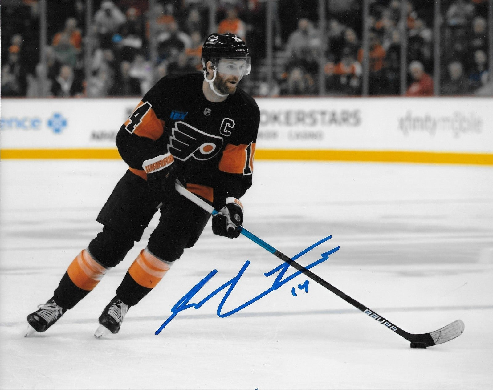 Great Autographed 8x10 Photo of the Philadelphia Flyers Sean Courturier. Obtained in person in Montreal before a Game Day Practice, it is beautifully signed in Blue Sharpie nice, clear and smudge free.