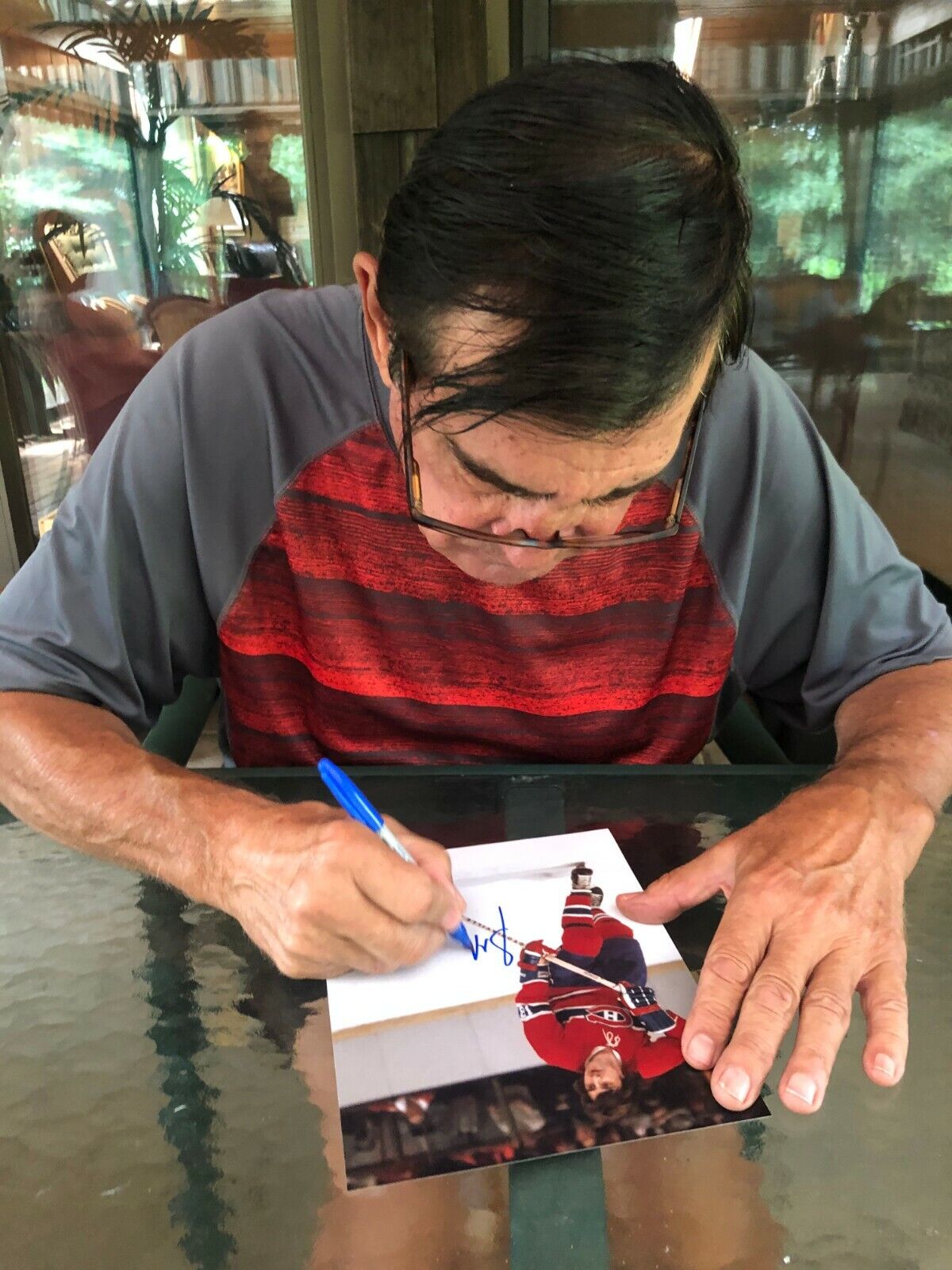 Great Autographed Montreal Canadiens Puck By Hall of Famer Serge Savard Inscribed H of F 86. Obtained at my JB Autographs Private Signing, it is beautifully signed in Silver Pen, nice, clear and smudge free.